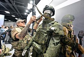 XXIX Международная выставка средств обеспечения безопасности государства "Интерполитех" в павильоне № 57 ВДНХ. Жанровая фотография. Стенд компании T-ARMIS – разработчика и производителя специального армейского и военного снаряжения.