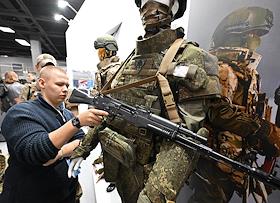 XXIX Международная выставка средств обеспечения безопасности государства "Интерполитех" в павильоне № 57 ВДНХ. Жанровая фотография. Стенд группы компаний "Калашников".
