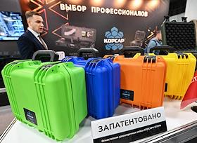 XXIX Международная выставка средств обеспечения безопасности государства "Интерполитех" в павильоне № 57 ВДНХ. Жанровая фотография. Стенд компании "Корсар". Антистатические кейсы "КОРСАР® МОЛНИЯ".