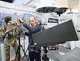 XXIX Международная выставка средств обеспечения безопасности государства "Интерполитех" в павильоне № 57 ВДНХ. Жанровая фотография. Стенд компании "3MX" оборудования по поиску БПЛА.