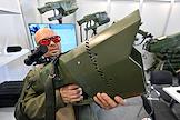 XXIX Международная выставка средств обеспечения безопасности государства "Интерполитех" в павильоне № 57 ВДНХ. Жанровая фотография. Стенд "Антикоптер.РФ". Переносной лазерный прожектор ПЛП-14.