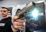 XXIX Международная выставка средств обеспечения безопасности государства "Интерполитех" в павильоне № 57 ВДНХ. Жанровая фотография. Стенд компании производителей фонарей и аксессуаров Olight (Олайт).