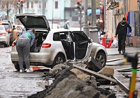 Виды Москвы. Жанровая фотография. Ремонтные работы на 1-й Брестской улице.
