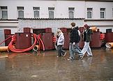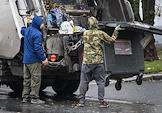 Жанровая фотография. Рабочие во время вывоза мусора.