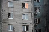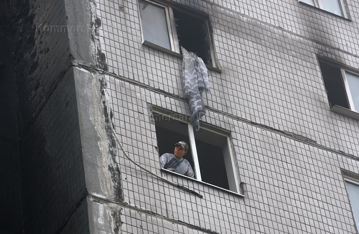 Последствия обстрела многоквартирного дома в Ленинском районе Донецка, в результате которого погибли два человека. Разбитые окна в доме.
