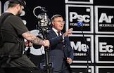 Просветительский марафон "Знание.Наука" в Национальном центре "Россия". Министр науки и высшего образования России Валерий Фальков (на экране) во время выступления на марафоне.