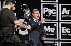 Просветительский марафон "Знание.Наука" в Национальном центре "Россия". Министр науки и высшего образования России Валерий Фальков во время выступления на марафоне.