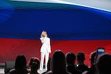 Просветительский марафон "Знание.Наука" в Национальном центре "Россия". Певица Полина Гагарина во время выступления на марафоне.