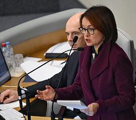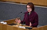Пленарное заседание Государственной думы (ГД) России. Председатель Центрального Банка России Эльвира Набиуллина во время заседания.