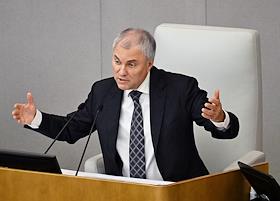 Пленарное заседание Государственной думы (ГД) России. Председатель ГД России Вячеслав Володин во время заседания.