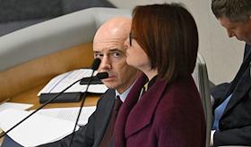 Пленарное заседание Государственной думы (ГД) России. Председатель Счетной палаты России Борис Ковальчук (справа) во время заседания.