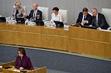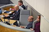 Пленарное заседание Государственной думы (ГД) России. Слева направо: министр финансов России Антон Силуанов, председатель Центрального Банка России Эльвира Набиуллина и министр экономического развития России Максим Решетников во время заседания.