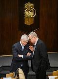 Пленарное заседание Государственной думы (ГД) России. Председатель комитета ГД России по защите конкуренции Валерий Гартунг (слева) и заместитель председателя комитета ГД России по экономической политике Михаил Делягин во время заседания.