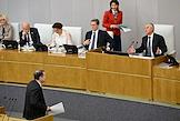 Пленарное заседание Государственной думы (ГД) России. Слева направо: заместитель председателя ГД России Виктория Абрамченко, председатель Центрального Банка России Эльвира Набиуллина, заместители председателя ГД России Александр Бабаков, Анна Кузнецова, первый заместитель председателя ГД России Александр Жуков и председатель ГД России Вячеслав Володин во время заседания.