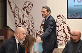Мероприятия, посвященные малым городам России и приуроченные к годовщине установления маршрута "Золотое кольцо", в доме Российского исторического общества (РИО). Сопредседатель Совета предпринимателей Москвы Андрей Ковалев во время мероприятий.