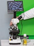 Экскурсия на молочную ферму и сыродельный завод компании "ЭкоНива". Жанровая фотография. Микроскоп в лаборатории.