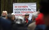 День памяти жертв политических репрессий на Левашовском мемориальном кладбище (Левашовская пустошь). Церемония памяти жертв политических репрессий. Возложение цветов. Чтение имен.