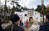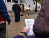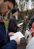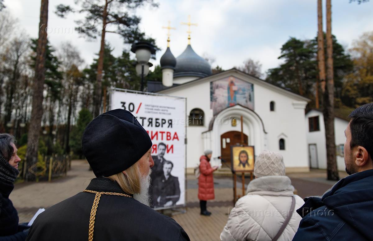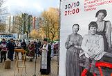Акция "Молитва памяти" возле Храма Священномученика Владимира в День памяти жертв политических репрессий. Чтение имен.