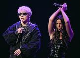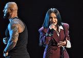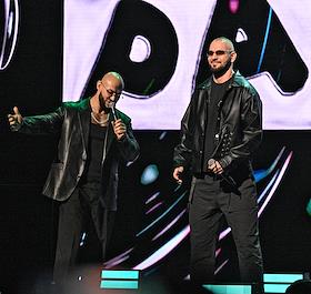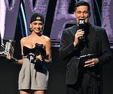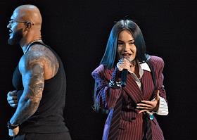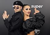Церемония вручения музыкальной премии "Жара Media Awards" в многофункциональном комплексе "Live Арена". Рэпер Джиган (Денис Устименко) (слева) и певица Kiliana (Лиана Геворкян) (справа) на церемонии.