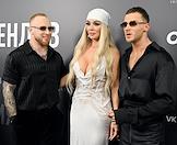 Церемония вручения музыкальной премии "Жара Media Awards" в многофункциональном комплексе "Live Арена". Слева направо: певцы Лёша Свик (Игорь Норкитович), Анна Седокова и Олег "Майами" Кривиков на церемонии.