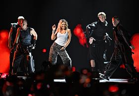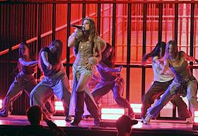 Церемония вручения музыкальной премии "Жара Media Awards" в многофункциональном комплексе "Live Арена". Певица Milana Star (Милана Маирко) (в центре) на церемонии.