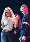 Церемония вручения музыкальной премии "Жара Media Awards" в многофункциональном комплексе "Live Арена". Певица Люся Чеботина (слева) и участник группы "Гламур" Nkeeei (Никита Коробыко) на церемонии.