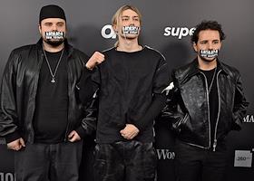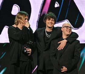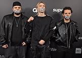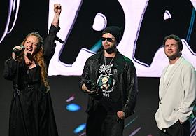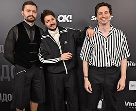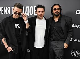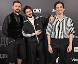 Церемония вручения музыкальной премии "Жара Media Awards" в многофункциональном комплексе "Live Арена". Слева направо: участники группы "Хлеб" Кирилл Трифонов, Денис Кукояка и Александр Шулико на церемонии.