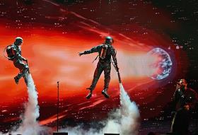 Церемония вручения музыкальной премии "Жара Media Awards" в многофункциональном комплексе "Live Арена". Участники группы Nemiga Владислав Соболев и Лидия Лемур на церемонии.