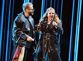 Церемония вручения музыкальной премии "Жара Media Awards" в многофункциональном комплексе "Live Арена". Певцы Герман Глас (Гласко) (слева) и Катя Голышева (Golysheva) (справа) на церемонии.