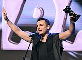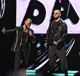 Церемония вручения музыкальной премии "Жара Media Awards" в многофункциональном комплексе "Live Арена". Участники группы "Те100стерон" ("Тестостерон") Андрей Бирбичадзе (слева) и Валери Бирбичадзе (справа) на церемонии.