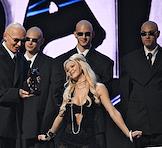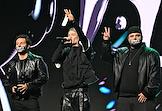 Церемония вручения музыкальной премии "Жара Media Awards" в многофункциональном комплексе "Live Арена". Слева направо: участники группы "Корни" Дмитрий Пакуличев, Алексей Кабанов и Александр Бердников на церемонии.