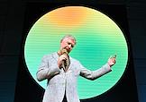 Международный фестиваль "Народы России и СНГ" в Центре международной торговли (ЦМТ). Церемония награждения лауреатов международного фотоконкурса "Русская цивилизация". Телеведущий Валдис Пельш во время церемонии.