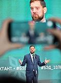 Международный фестиваль "Народы России и СНГ" в Центре международной торговли (ЦМТ). Церемония награждения лауреатов международного фотоконкурса "Русская цивилизация". Телеведущий Максим Шарафутдинов во время церемонии.