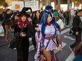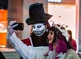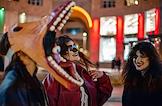 Празднование Хэллоуина в Ереване. Люди в маскарадных костюмах на одной из улиц города. Жанровая фотография.