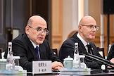 Рабочая поездка председателя правительства России Михаила Мишустина в Китай. Встреча глав правительств России и Китая на территории государственной резиденции "Сиху". Председатель правительства России Михаил Мишустин (слева) и заместитель председателя правительства России Дмитрий Чернышенко (справа) во время встречи.