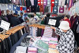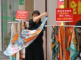 Виды Ханчжоу. Жанровая фотография. Продавщица в уличном магазине торгует платками.