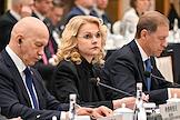 Рабочая поездка председателя правительства России Михаила Мишустина в Китай. Встреча глав правительств России и Китая на территории государственной резиденции "Сиху". Слева направо: заместитель председателя правительства России - полномочный представитель президента России в Дальневосточном Федеральном округе Юрий Трутнев, заместитель председателя правительства России Татьяна Голикова и первый заместитель председателя правительства России Денис Мантуров во время встречи.
