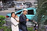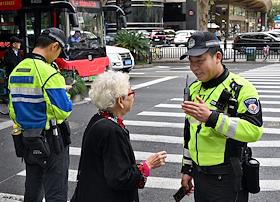 Виды Ханчжоу. Жанровая фотография. Сотрудник дорожной полиции во время беседы с пешеходом.