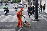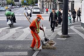 Виды Ханчжоу. Жанровая фотография. Дворник во время уборки улицы.