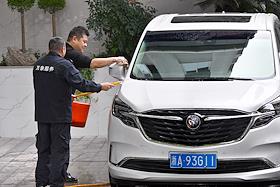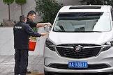 Виды Ханчжоу. Жанровая фотография. Мойка автомобиля на улице.