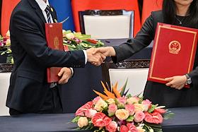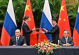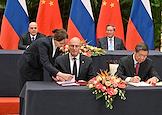 Рабочая поездка председателя правительства России Михаила Мишустина в Китай. Церемония подписания совместных документов по итогам встречи глав правительств России и Китая на территории государственной резиденции "Сиху".