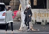 Виды Ханчжоу. Жанровая фотография. Люди на остановке общественного транспорта.