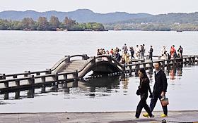 Виды Ханчжоу. Жанровая фотография. Люди на берегу озера.
