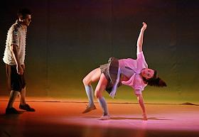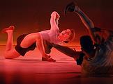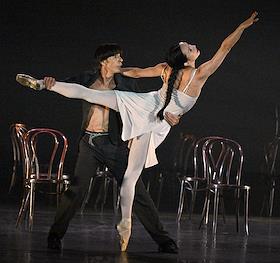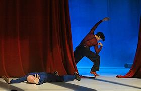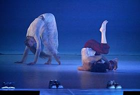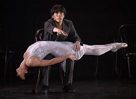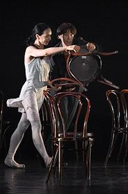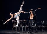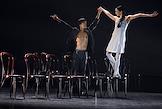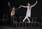 Фестиваль современной хореографии "Context. Diana Vishneva". Премьера двухактного вечера по произведениям французского драматурга Эжена Ионеско на Основной сцене московского Театра имени Ермоловой. Балет "Les Chaises / Стулья", хореография Мориса Бежара. Балерина Диана Вишнёва и танцовщик Жиль Роман во время исполнения балета.