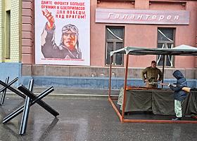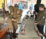 Историческая программа ко Дню народного единства на территории кинопарка "Москино". Жанровая фотография. Площадка исторической реконструкции, посвященная событиям Великой Отечественной войны, на территории кинопарка. Экспозиция "Москва 1940-х". Выставка, воссоздающая военную атмосферу 1941 года с предметами формы, оружием и амуницией.