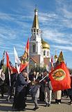 День народного единства и Празднование в честь Казанской иконы Божией Матери. Волжский крестный ход в честь Казанской иконы Божией Матери. Участники крестного хода на площади перед Соборным храмом Апостола Иоанна Богослова.