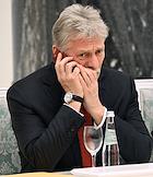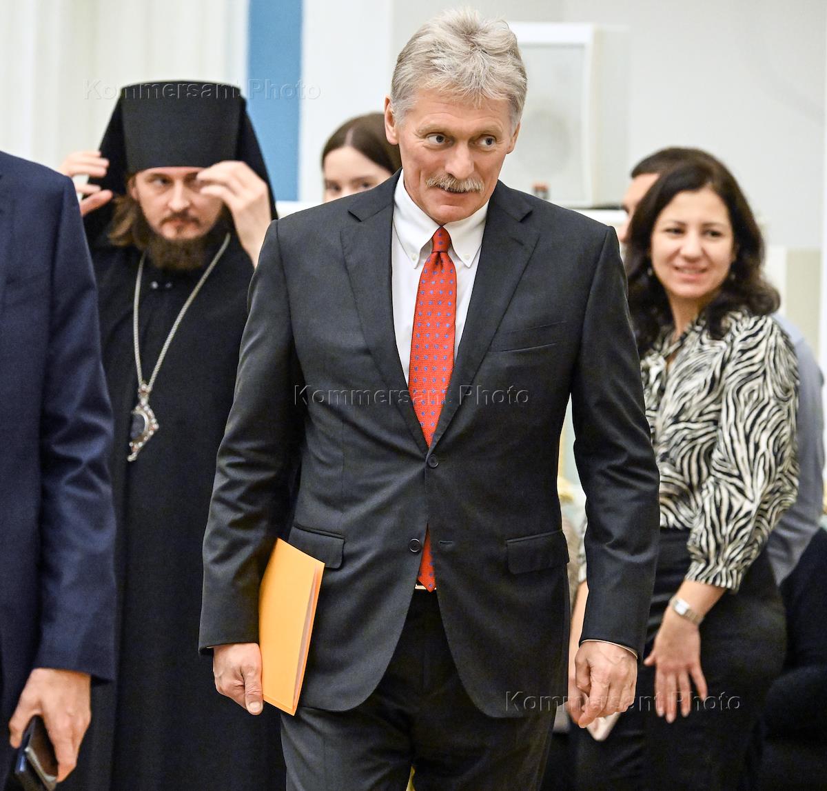 Церемония вручения государственных наград и премии президента России за вклад в укрепление единства российской нации в Екатерининском зале Сенатского дворца Кремля. Заместитель руководителя администрации президента России, пресс-секретарь президента Дмитрий Песков перед началом церемонии.