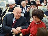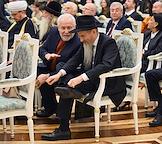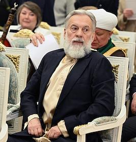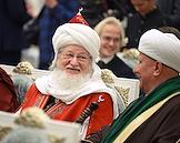 Церемония вручения государственных наград и премии президента России за вклад в укрепление единства российской нации в Екатерининском зале Сенатского дворца Кремля. Председатель Центрального духовного управления мусульман России, верховный муфтий Талгат Таджуддин (слева) и глава Духовного собрания мусульман Российской Федерации, муфтий Альбир Крганов (справа) перед началом церемонии.