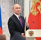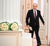Церемония вручения государственных наград и премии президента России за вклад в укрепление единства российской нации в Екатерининском зале Сенатского дворца Кремля. Президент России Владимир Путин (в центре) во время церемонии.