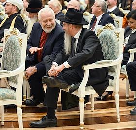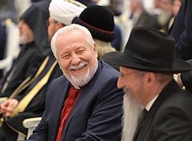 Церемония вручения государственных наград и премии президента России за вклад в укрепление единства российской нации в Екатерининском зале Сенатского дворца Кремля. Начальствующий епископ Российского объединенного союза христиан веры евангельской (пятидесятников) Сергей Ряховский (слева) и главный раввин Федерации еврейских общин России Берл Лазар (справа) перед началом церемонии.